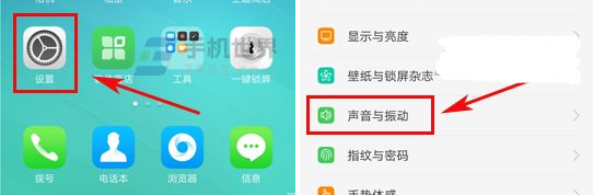 1、打开手机【设置】菜单,进入设置菜单后点击【声音与振动】选项。(如下图)