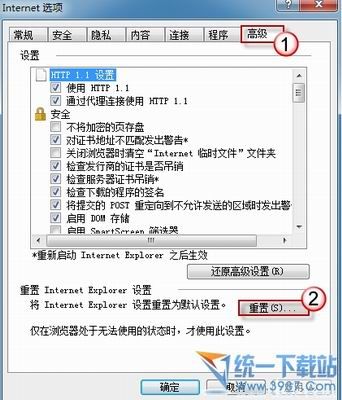 4.通过重置,可以有效地解决各种 Internet Explorer 浏览器问题。如果还不行,只能把ie的临时文件全部删除了。