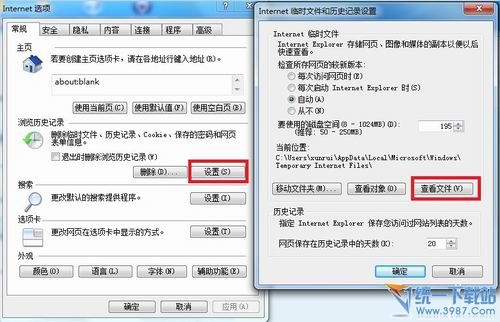 2.弹出历史记录窗口后,勾选“Internet 临时文件”再单击“删除”按钮进行删除。