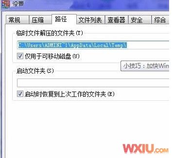 打开WinRAR,单击“选项→设置”,再选择“路径”选项卡,就会看到最上面的“临时文件解压的文件夹”了,就是它耽误了压缩的时间,因为RAR开始解压时是把解压出来的文件先暂时放在这个“C:\DOCUME~1\mxd\LOCALS~1\Temp\”,临时文件夹中的,等解压结束后再把它们剪切至所选择的目的文件夹中。