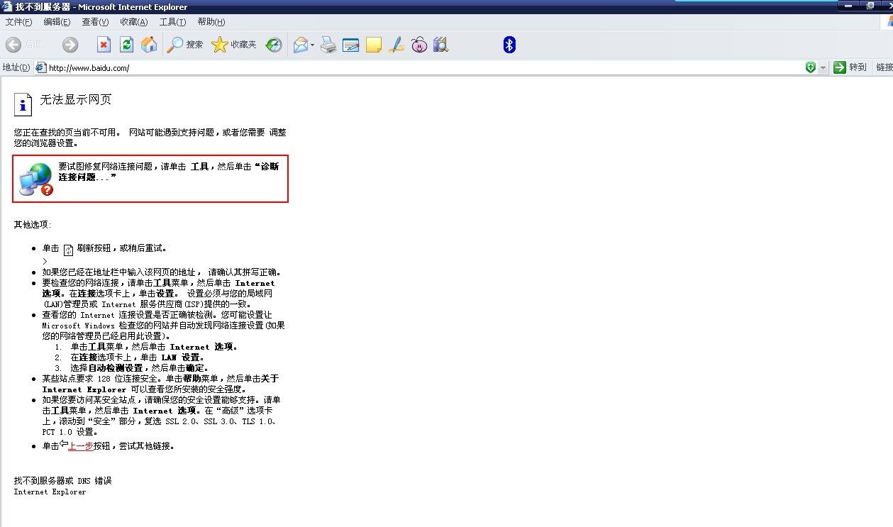 3 想到自己之前遇到过的一种情况,使用某个HTTP抓包工具(这个软件会设置代理)异常退出以后也曾经出现过类似的情况,于是打开IE浏览器-工具-Internet 选项-连接-局域网设置 查看了代理服务器的设置,发现这里果然有问题,于是取消代理设置以后重启浏览器访问网站恢复正常了