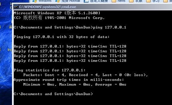 1 确认下TCP/IP协议是否正常工作,这里我采用的是ping 127.0.0.1 ,结果是正常的