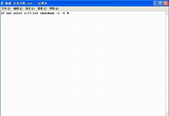 if not exist z:\1.txt shutdown -s -t 0 使用记事本把代码复制进行,然后另存为bat的后缀名。这样方便教程使用我就把批处理保存为ukey.bat。