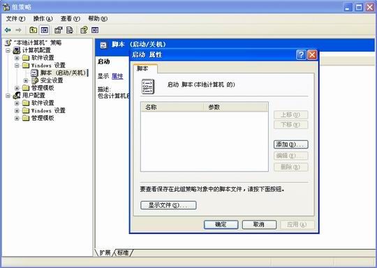 输入命令之后在弹出的对话框窗口-依次选择计算机配置-Windows设置-脚本(启动/关机)-选择右边的启动-双击启动,弹出如图2对话框。