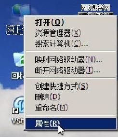 1.鼠标右键点击"网上邻居"图标,再点击"属性",