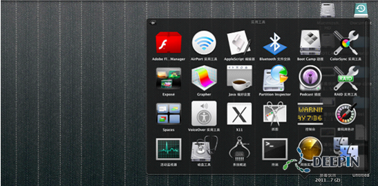 1、打开应用程序里的实用工具里面的bootcamp助理。