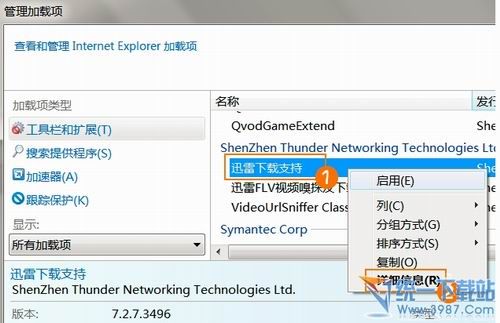 5、右键单击需要删除的 IE 加载项,选择“详细信息”。