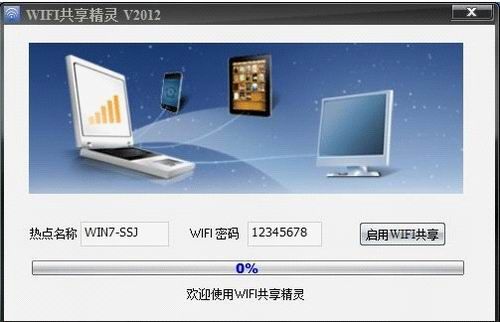 安装完后双击桌面上的 WIFI共享精灵 图标,运行程序。