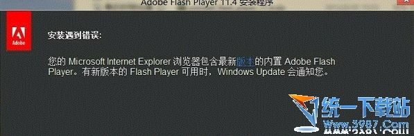 此时,如果点击下载安装flash,会收到如下报错,原因是WIN 8下的flash是内置的和通过系统更新来更新的,不支持手动安装和更新flash。