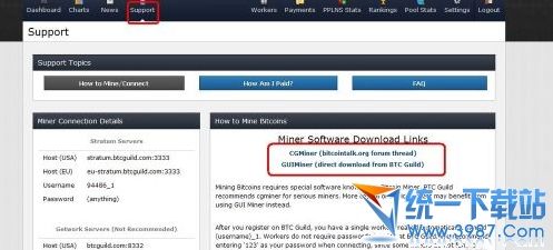 3、点击support然后在页面中找到挖矿软件的下载位置。点击下载到本地,并解压。
