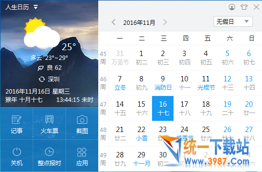 人生日历囊括了生活的方方面面的小工具,除了满足你生活基本所需的功能,还有快递查询、词典、计算器等,应有尽有,只要你想得到,都可以在这里找到。成为你的贴心小管家,不用再担心错过重要时刻,体贴周到提醒让你把握住每个重要时刻。