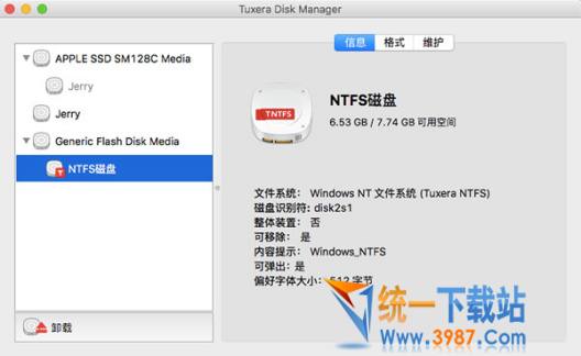 NTFS for Mac有时更像一个插件,只要你将它成功安装,不用进行其他*作便可以直接使用ntfs格式设备了,快速存放、传输文件。同时你可以在软件的界面中看到已经被识别的磁盘。