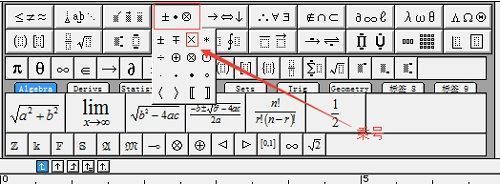 在MathType工具栏的运算符符号模板下选择乘号,如下图所示。