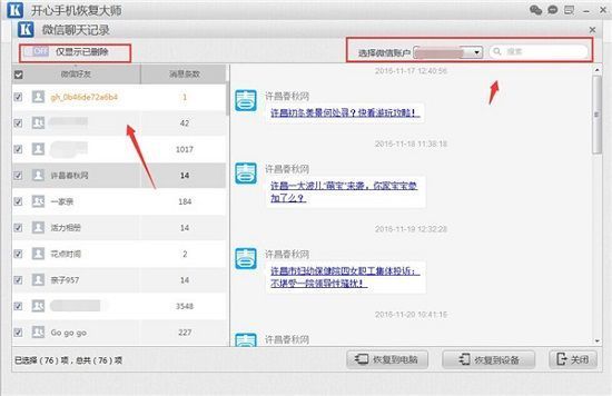 备份苹果手机的微信聊天记录就是这么简单,借助开心手机恢复大师,无需手机越狱,自己在家就可以轻松完成备份*作,另外,我们不难看出,开心手机恢复大师还可以恢复iPhone已删除的微信聊天记录的。