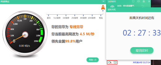 界面左下角有两个小图标,不但可以给WIFI测速还能设置时间定时关机,为用户的工作和生活考虑的十分到位,堪称业界良心。