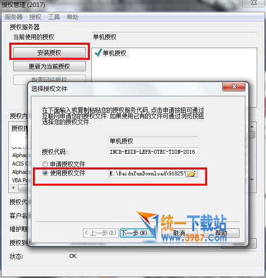 6、点击“安装授权”》“使用授权文件”