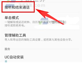 2、接着点击【接听和结束通话】,然后把【按电源键】的开关打开就行了。