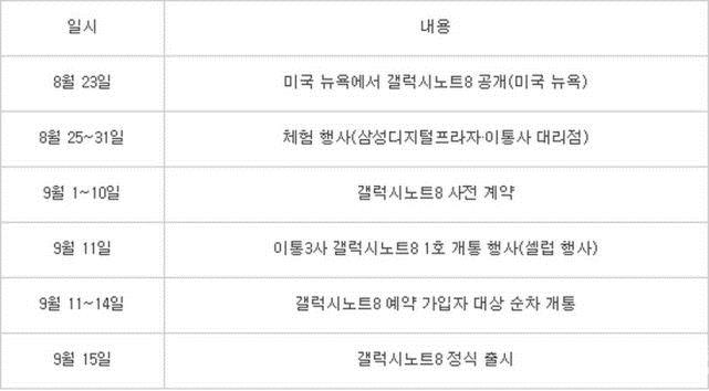而对于三星GALAXY Note 8的预订和发售,韩国媒体etnews则公布了具体的线路图,具体来说,便是将于8月23日正式发布,然后在接下来的一周时间中交由运营商和销售商进行宣传推广,9月1日到10日开始接受预订,至于最终的发售时间则被安排在9月15日。