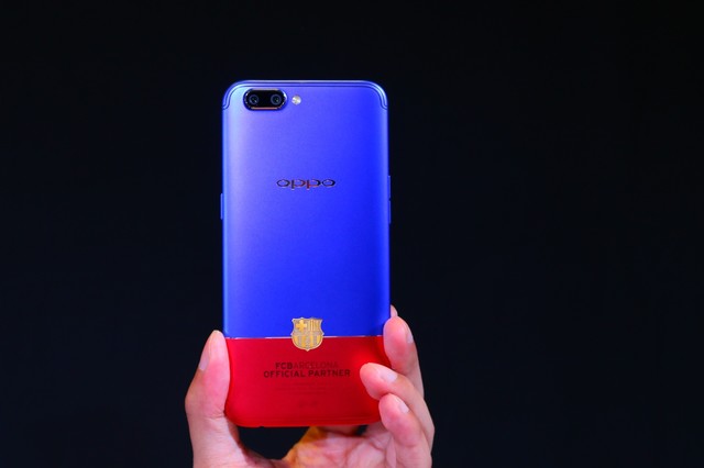 巴萨全称为“巴塞罗那足球俱乐部”,是一家位于西班牙巴塞罗那市的足球俱乐部,西班牙足球甲级联赛传统豪门之一。OPPO R11巴萨版采用了红蓝撞色设计,灵感号称来自巴萨球衣。机身上部为蓝色,底部则是红色,红蓝交汇处镶嵌了巴萨荣耀精神的18K镀金队徽,机身表面采用了三维曲面的“遮蔽氧化工艺”,实现了巴萨红蓝双色比较完美的融合。