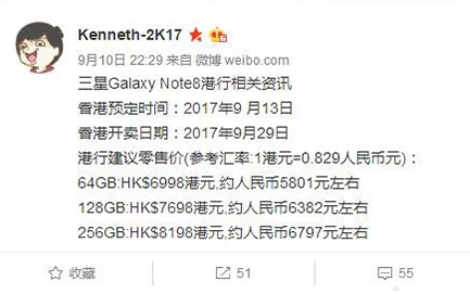 按照以往的惯例,国行价格在港版价格的基础上上浮17%,大家可以借此计算下国行版本Galaxy Note 8的价格。