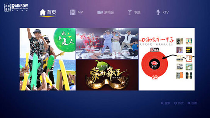 服务内容有家庭卡拉OK、最新MV首播、现场版演唱会等。原唱原版卡拉OK是彩虹音乐内容的最大特色,集成了数万首KTV热门正版歌曲;最新最热的MV可时刻为您同步流行音乐视频作品;更有数千场演唱会视频供用户身临其境般地感受明星演唱会现场。
