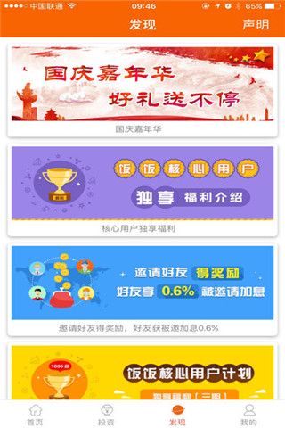 饭饭金服安卓版是一款专业的金融理财平台,功能强大,这里为你提供最快的盈利方式,提供合同、优质项目和网络技术安全等多重保障,最专业的理财团队为你的资金保驾护航,让你更好的进行理财哦。