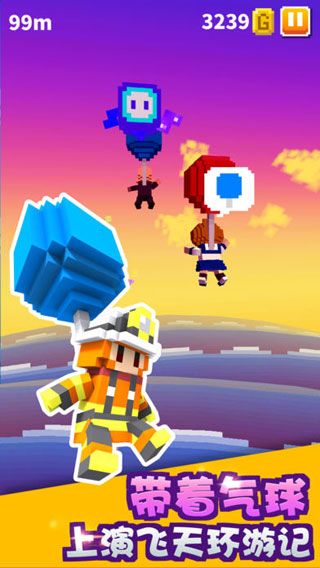 气球岛iOS版是一款全新的3D像素跑酷游戏,游戏中的玩法简单有趣,玩家需要控制主角牵着气球在危险场景中前行,途中会不断遭遇企图打破气球的敌人以及机关和障碍,你需要先下手一一清理掉他们,避免落入地面喂鱼或者粉身碎骨的局面。