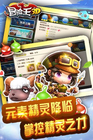 游戏世界中有着不同的精灵伙伴陪你冒险与成长,呆萌的功夫熊猫和兢兢业业的机器人,贴心的水精灵和坏坏的蘑菇王,还有神秘的终极精灵火凤凰,你需要在世界各地收集精神碎片来召唤精灵,通过培养进化来解放它们的终极技能,使你在冒险的过程中不再孤单。