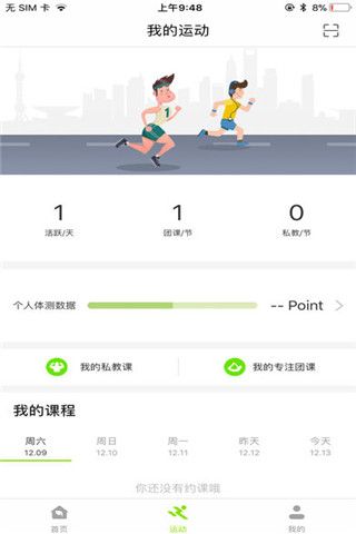 3、团体课预约,购买会员卡之后,有效期内团体课可以随意在APP内预约。