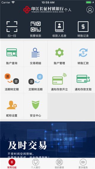 手机银行为您提供账户查询、交易查询、账户管理、行内转账、跨行转账、本人账户互转、定活互转、通知存款开立、通知存款支取、昵称设置等丰富的移动金融服务。
