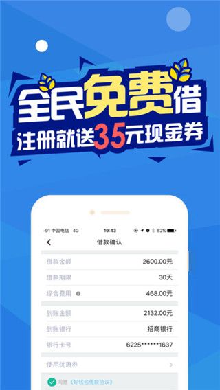 好钱包是一款依托移动互联网线上信用借款APP产品,主要解决年轻人日常小额消费借款需求。具有随借随用随还的灵活便捷性,提供满足500--3000元额度,“7-30天”灵活周期的信用借款服务。好钱包借用手机客户端的便捷,从申请借款到还款全流程人性化线上操作,借用互联网大数据及智能审批系统,一键申请,快速审批,即刻到账。 当你需要用钱时,就像打开自己的钱包用钱那么简单顺畅。