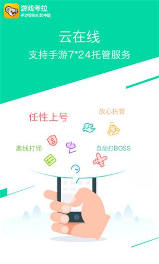 1.提供手游离线托管服务,使用游戏考拉登录你的游戏后,退出游戏考拉,仍可以保持游戏持续在线,24小时不停打怪、升级不停歇;