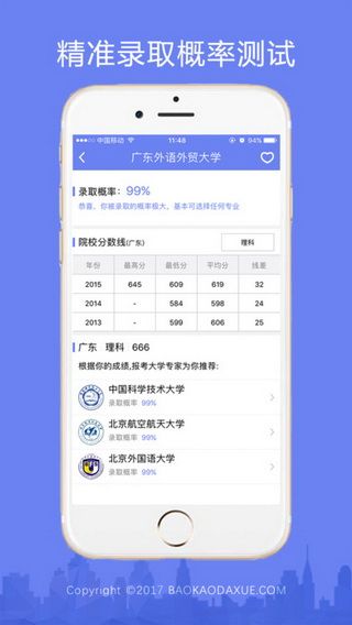 报考大学iOS版是一款高考志愿填报应用,基于大数据和云计算方法,打造专业的高考志愿填报智能分析工具和评价体系。可以根据考分匹配学校,也可以查询大学录取分历史记录。