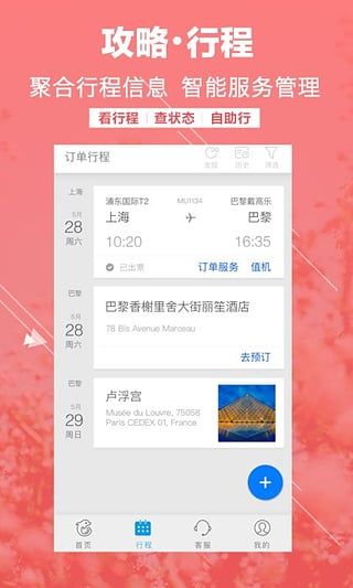 6.玩乐:提供覆盖全球目的地的一日游、交通接驳、出境WiFi上网、当地美食、休闲娱乐、新奇探险等预订服务,轻松预订,享受酷炫的旅行体验。