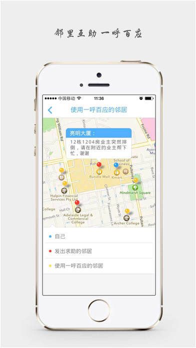 4.一呼百应:业主发生突发疾病或摔倒等意外,“一呼百应”能帮您马上联系到热心邻居,远亲不如近邻,求助、帮人一键完成;