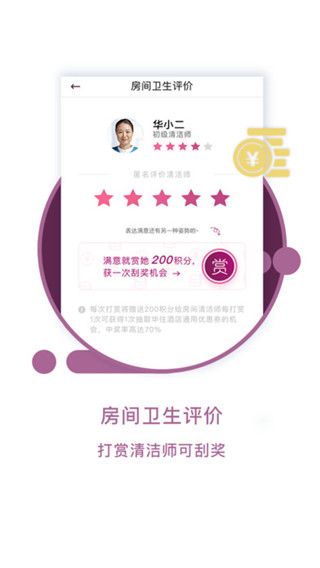 3.房间卫生评价,打赏清洁师可刮奖,店长推荐,住店即送周边美食优惠券;