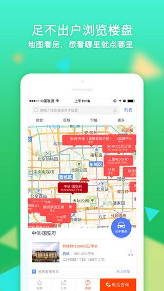 3.【详尽的房源信息】覆盖全国100多个城市,几十万个楼盘.提供精准的楼盘价格,高清的楼盘图片,详尽的周边配套,准确的交通路况,真实的用户评价.为您买房提供最好的信息支持.
