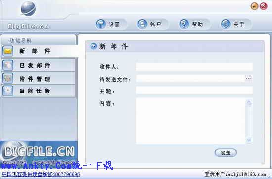 • 大邮件传输系统 v6.1中文绿色版 (邮件附件最大达到2.1G)