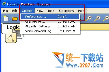2、然后启动PT 6.0,打开Options选项,选择第一项Preferences,在Interface的选项卡下面有个“Select Language”在下面的框里选择“Chinese.ptl”然后点击右下角的”Change Language“ 。