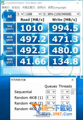 CrystalSSDMark是一款专为NVMe SSD做了优化。CrystalSSDMark和此前的DiskMark界面几乎如出一辙,但4K队列和调用的线程数从之前仅限一次修改为可同时比较三组数据。支持32位和64位操作系统。
