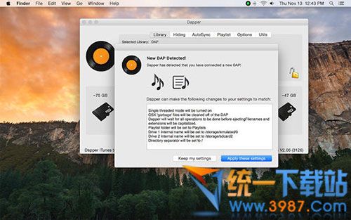 Dapper for Mac是一款方便用户管理自己音频的Mac音乐管理软件,Dapper for Mac的体积小巧功能强大,可以帮助你轻松地将iTunes上的播放列表、音乐和专辑封面传输到你的数字音频播放器上!用户不仅可以查看itunes上下载的音频文件信息,还可以查看自己的音频储存状况,用户还可以通过该软件把音频文件传输到自己的移动数据设备上,非常的实用。本站提供最新版Dapper for Mac下载。