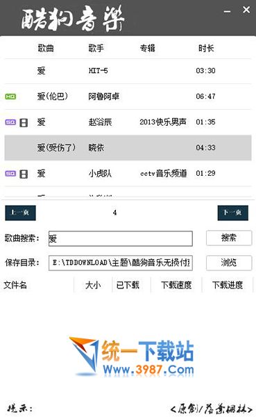 酷狗音乐无损付费歌曲下载工具,由@落叶枫林授权本站独家发布!此独立下载器,可搜索酷狗引擎歌曲,任意下载无损品质、收费歌曲;支持下载标准音质、高品音质、无损音质、MV下载、M4a格式等。