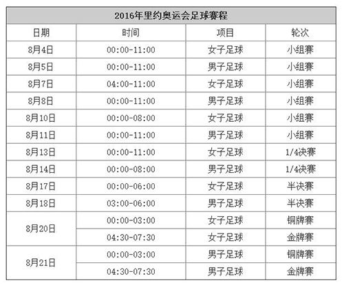 作为“足球王国”,巴西人将足球比赛都安排在了当地时间的下午和晚上进行。这就苦了中国球迷,因为时差的关系,大部分比赛都要熬夜收看了。按照惯例,足球是开幕式前唯一进行比赛的项目,女足和男足的决赛则将分别于北京时间8月20日凌晨4点30和8月21日凌晨4点30开踢。