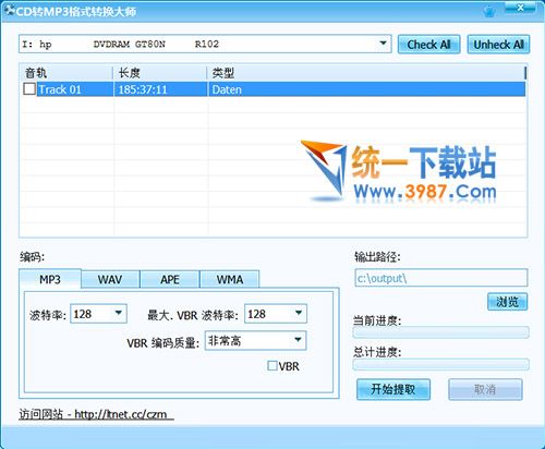 CD转MP3格式转换大师是一款Windows平台下简单易用的CD转MP3软件。有了CD转MP3格式转换大师,您可以轻松的将音乐CD转换成MP3音乐格式,欢迎大家下载使用。