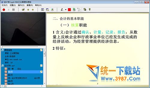 3、讲稿目录同步录制。可编辑课件信息(标题,制作单位等),可更换背景色。