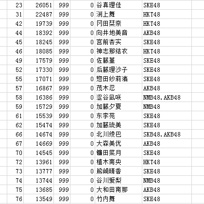 第三,彩姐(NMB老大,和小猪实力不相上下,主要是小猪和阿酱她们一起打拼过,算是最早的那一批人,感情上希望小猪早日登顶)