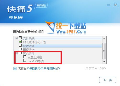 快播5.0精简版安装步骤如下,在安装过程中有插件,请自行选择,具体如图: