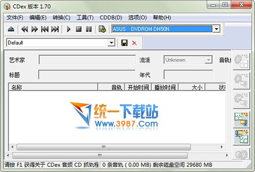 CDex中文版能抓取CD 音轨不失真的转换成WAV文件或者直接转换成MP3文件,本身已有编码功能,并不需要外挂其它的编码软件,支持ATAPI及SCSI光驱,另外也能播放CD。