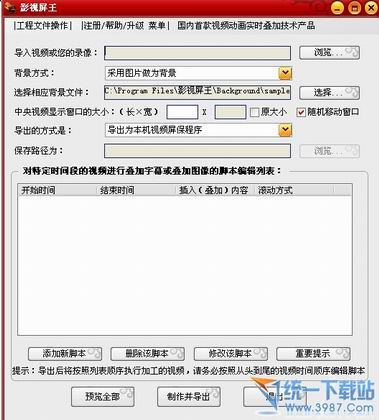 影视屏王可以将您的视频通过简单而智能的软件叠加加工在电脑上变得栩栩如生,充满个性。它可以允许您对视频进行实时的编辑,可以让您在指定的时间线内插加文字、图像甚至产生动画效果。这意味着您可以将您搜集的视频、MTV或自己的录像视频在特定时间段内加上可爱的装饰物品、配上动感的滚动字幕注释或者创意的搞笑动画,让您平淡无奇的视频在您手中变得令人兴奋和个性!完成制作后,您可以将加工视频保存为本机屏幕保护,同时更支持导出可分发共享的屏幕保护程序或可分发共享的EXE礼包,这样更方便您和他人共享您的精彩制作!所有的一切: