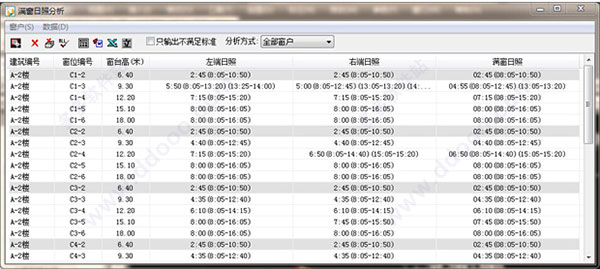 进行建筑物窗户的左端、右端、满窗日照分析并生成图示及详细的统计报表